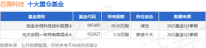 持有芯海科技最多的基金为创金合信科技成长股票A,目前规模为1.55亿元,最新净值2.0948(10月30日),较上一交易日下跌1.45%,近一年上涨31.38%。该基金现任基金经理为周志敏。