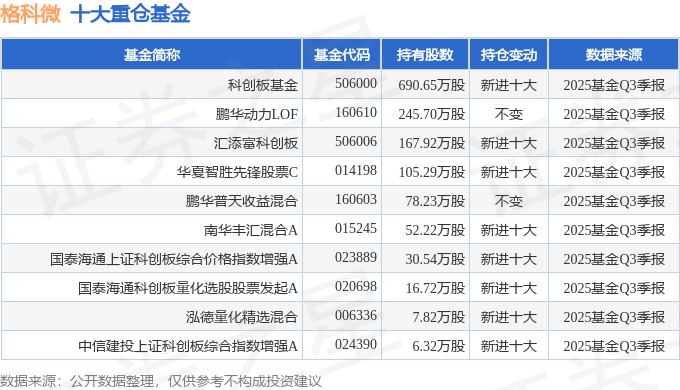 持有格科微最多的基金为科创板基金,目前规模为24.48亿元,最新净值1.134(10月31日),较上一交易日下跌2.42%,近一年上涨59.21%。该基金现任基金经理为郑晓曦。