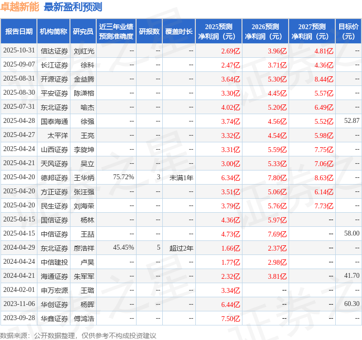 开源证券股份有限公司金益腾,李思佳,宋梓荣近期对卓越新能进行研究并发布了研究报告《公司信息更新报告:Q3盈利同环比增长,新项目落地或推动公司成长》,给予卓越新能买入评级。