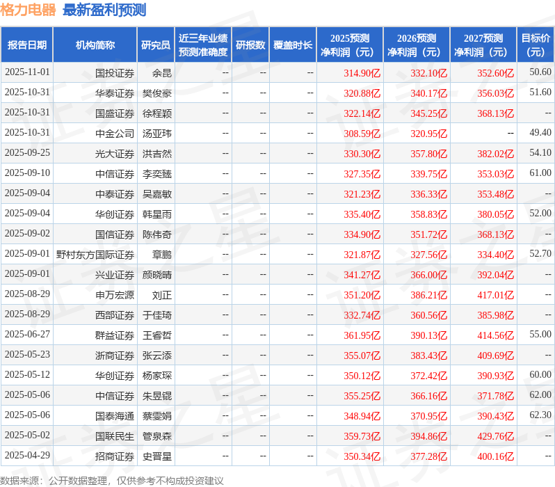 最新盈利预测明细如下: