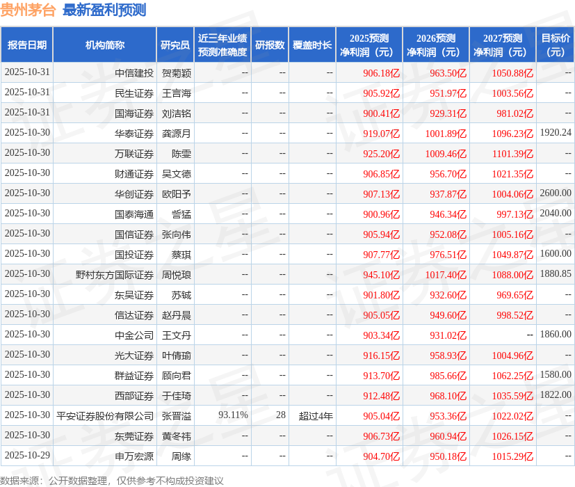 华安证券股份有限公司邓欣,郑少轩近期对贵州茅台进行研究并发布了研究报告《贵州茅台25Q3点评:顺应市场,行稳致远》,给予贵州茅台买入评级。