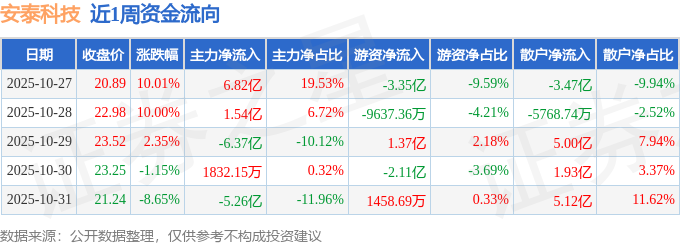 资金流向数据方面,本周安泰科技主力资金合计净流出3.09亿元,游资资金合计净流出4.9亿元,散户资金合计净流入7.99亿元。本周资金流向一览见下表: