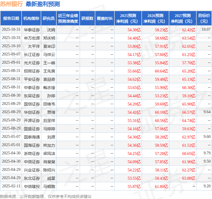 开源证券股份有限公司刘呈祥,吴文鑫近期对苏州银行进行研究并发布了研究报告《苏州银行2025年三季报点评:息差边际上升,存贷增速亮眼》,给予苏州银行买入评级。