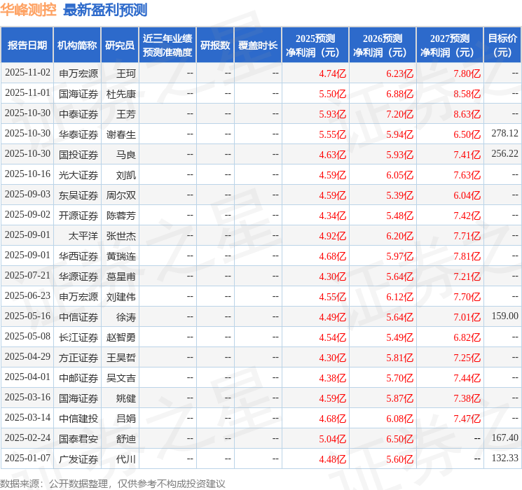 东吴证券股份有限公司周尔双,李文意近期对华峰测控进行研究并发布了研究报告《2025年三季报点评:业绩持续超预期,看好高端8600系列充分受益于算力SoC需求:华》,给予华峰测控增持评级。