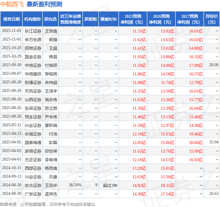 以下是详细的盈利预测信息: