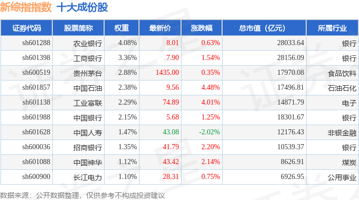 证券之星消息,11月3日,新综指(000017)指数报收于3361.18点,涨0.55%,成交9287.41亿元,换手率1.35%。当日该指数成份股中,上涨的有1338家,英方软件以20.0%的涨幅领涨,下跌的有807家,清越科技以20.02%的跌幅领跌。