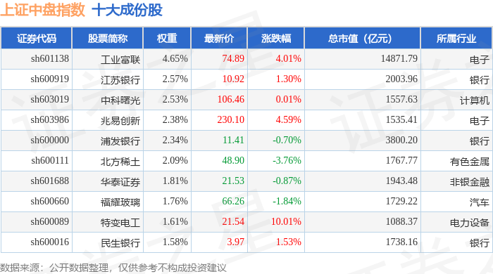 证券之星消息,11月3日,上证中盘(000044)指数报收于4646.5点,涨0.58%,成交1698.7亿元,换手率1.05%。当日该指数成份股中,上涨的有73家,特变电工以10.01%的涨幅领涨,下跌的有53家,巨化股份以4.28%的跌幅领跌。