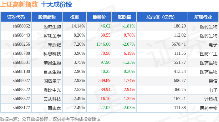 证券之星消息,11月3日,上证高新(000131)指数报收于3865.79点,涨0.66%,成交493.52亿元,换手率2.15%。当日该指数成份股中,上涨的有28家,英方软件以20.0%的涨幅领涨,下跌的有22家,概伦电子以3.21%的跌幅领跌。