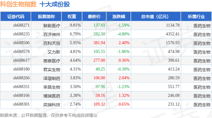 证券之星消息,11月3日,科创生物(000683)指数报收于1189.92点,跌0.08%,成交184.02亿元,换手率1.99%。当日该指数成份股中,上涨的有25家,三生国健以7.88%的涨幅领涨,下跌的有25家,皓元医药以5.5%的跌幅领跌。