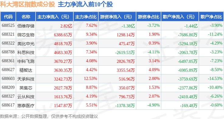 资金流向方面,科大湾区(000697)指数成份股当日主力资金净流出合计1.34亿元,游资资金净流入合计3.75亿元,散户资金净流出合计2.4亿元。成份股资金流向详情见下表: