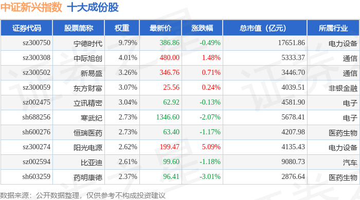 证券之星消息,11月3日,中证新兴(000964)指数报收于11192.72点,跌0.13%,成交3152.9亿元,换手率1.55%。当日该指数成份股中,上涨的有46家,特变电工以10.01%的涨幅领涨,下跌的有52家,恒立液压以4.03%的跌幅领跌。