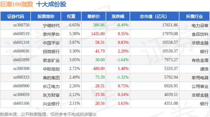 巨潮100(399313)指数十大成份股详情如下: