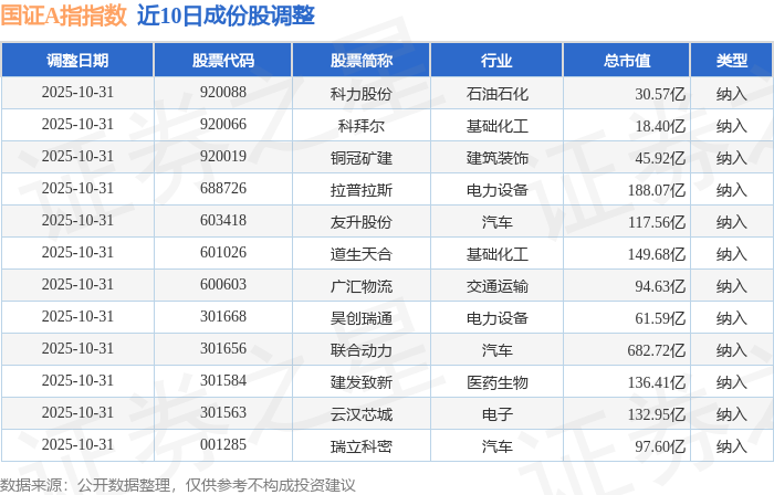 近10日内国证A指(399317)指数成份股做了调整,新纳入了12只股票。