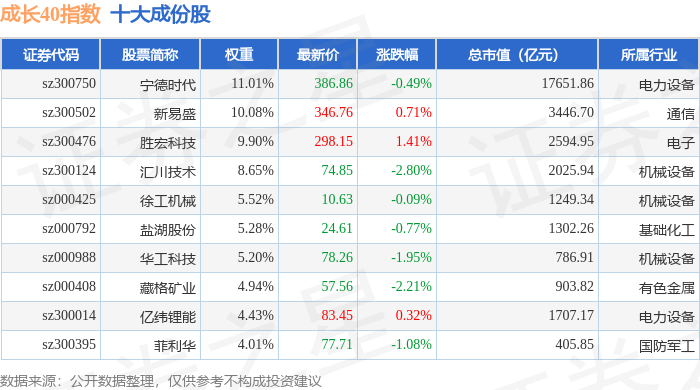 成长40(399326)指数十大成份股详情如下: