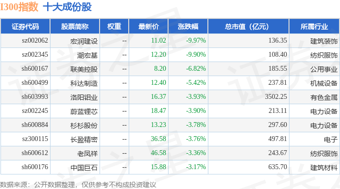 I300(399416)指数十大成份股详情如下: