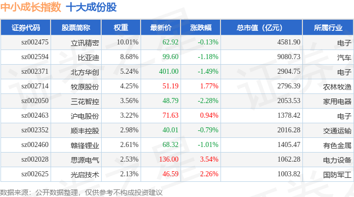 中小成长(399602)指数十大成份股详情如下: