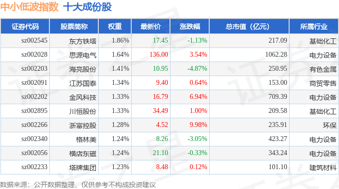 中小低波(399663)指数十大成份股详情如下: