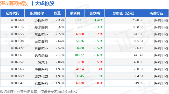 证券之星消息,11月3日,深A医药(399674)指数报收于2074.42点,涨0.38%,成交680.1亿元,换手率2.69%。当日该指数成份股中,上涨的有147家,百诚医药以19.15%的涨幅领涨,下跌的有69家,万邦德以5.18%的跌幅领跌。