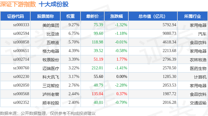 资金流向方面,深证下游(399706)指数成份股当日主力资金净流出合计25.41亿元,游资资金净流入合计8.15亿元,散户资金净流入合计17.26亿元。成份股资金流向详情见下表: