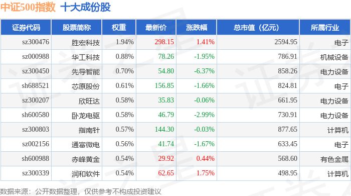证券之星消息,11月3日,中证500(399905)指数报收于7333.6点,涨0.04%,成交3903.97亿元,换手率1.96%。当日该指数成份股中,上涨的有271家,天华新能以12.0%的涨幅领涨,下跌的有216家,中材科技以8.51%的跌幅领跌。