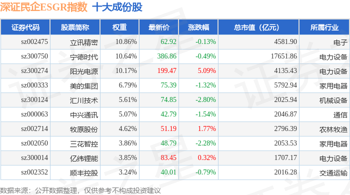 深证民企ESGR(470056)指数十大成份股详情如下: