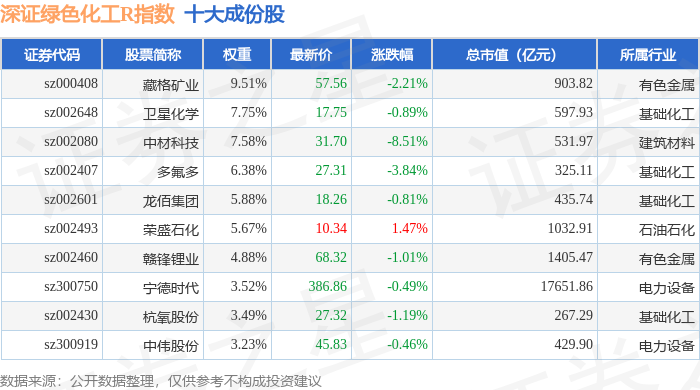深证绿色化工R(470076)指数十大成份股详情如下: