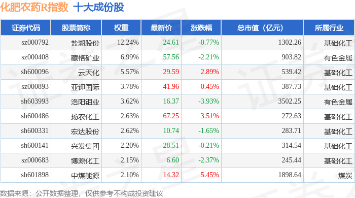 化肥农药R(480035)指数十大成份股详情如下: