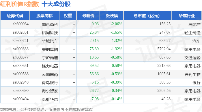 红利价值R(489016)指数十大成份股详情如下: