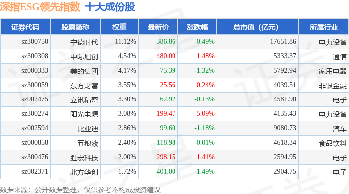 证券之星消息,11月3日,深指ESG领先(970029)指数报收于14374.58点,涨0.06%,成交3106.44亿元,换手率1.71%。当日该指数成份股中,上涨的有108家,天华新能以12.0%的涨幅领涨,下跌的有88家,中材科技以8.51%的跌幅领跌。