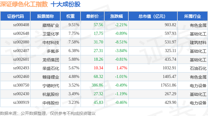 深证绿色化工(970076)指数十大成份股详情如下: