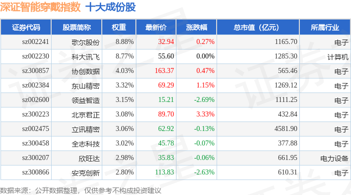 深证智能穿戴(970074)指数十大成份股详情如下: