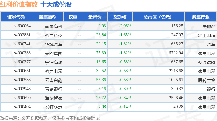 证券之星消息,11月3日,红利价值(989016)指数报收于4431.37点,涨0.95%,成交362.32亿元,换手率0.35%。当日该指数成份股中,上涨的有39家,中国石油以4.48%的涨幅领涨,下跌的有10家,南京高科以2.06%的跌幅领跌。