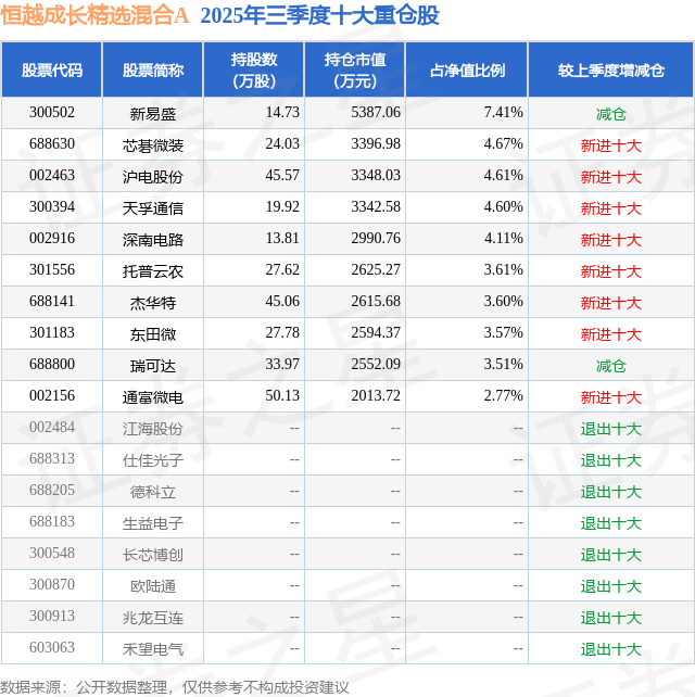 根据2025基金Q3季报公募基金重仓股数据,重仓该股的公募基金共10家,其中持有数量最多的公募基金为恒越基金的恒越成长精选混合A。恒越成长精选混合A目前规模为4.73亿元,最新净值0.8291(11月3日),较上一交易日上涨0.04%,近一年上涨52.21%。该公募基金现任基金经理为廖明兵。廖明兵在任的基金产品包括:恒越内需驱动混合A,管理时间为2025年1月2日至今,期间收益率为-2.13%。