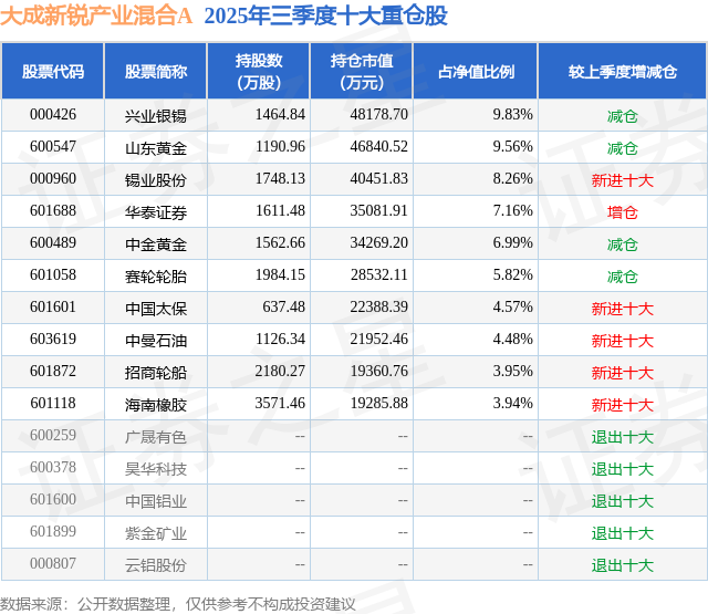 重仓兴业银锡的前十大公募基金请见下表: