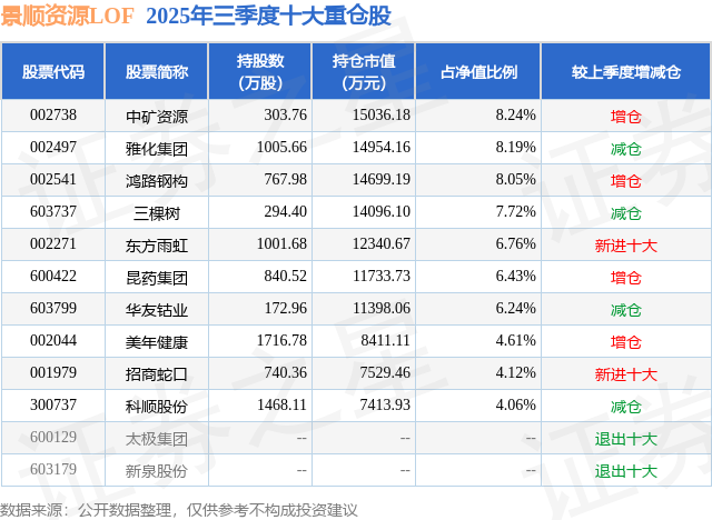 根据2025基金Q3季报公募基金重仓股数据,重仓该股的公募基金共10家,其中持有数量最多的公募基金为景顺长城基金的景顺资源LOF。景顺资源LOF目前规模为17.52亿元,最新净值0.541(11月3日),较上一交易日上涨0.56%,近一年上涨22.12%。该公募基金现任基金经理为韩文强。韩文强在任的基金产品包括:景顺长城中国回报混合A,管理时间为2019年10月10日至今,期间收益率为64.72%;景顺长城安鑫回报一年持有期混合A,管理时间为2020年7月10日至今,期间收益率为9.07%;景顺长城致远混合A,管理时间为2023年2月28日至今,期间收益率为-11.67%。