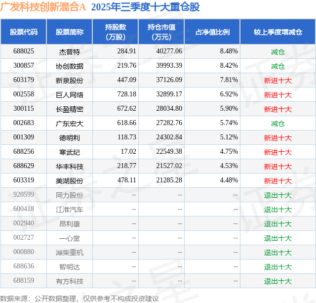 根据2025基金Q3季报公募基金重仓股数据,重仓该股的公募基金共55家,其中持有数量最多的公募基金为广发基金的广发科技创新混合A。广发科技创新混合A目前规模为31.41亿元,最新净值2.4055(11月3日),较上一交易日上涨0.6%,近一年上涨52.33%。该公募基金现任基金经理为吴远怡。吴远怡在任的基金产品包括:广发创新升级混合,管理时间为2020年9月30日至今,期间收益率为-16.13%;广发北交所精选两年定开混合A,管理时间为2021年11月23日至今,期间收益率为88.74%;广发价值核心混合A,管理时间为2022年11月1日至今,期间收益率为88.55%。