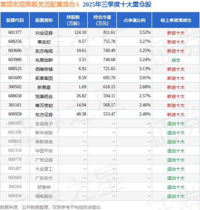 富国宏观策略灵活配置混合A的前十大重仓股如下: