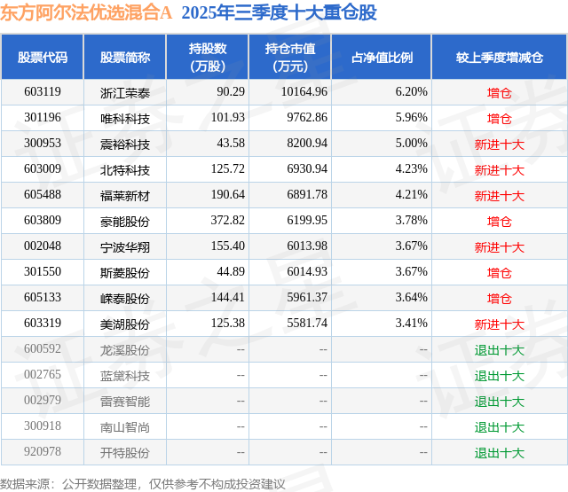 根据2025基金Q3季报公募基金重仓股数据,重仓该股的公募基金共19家,其中持有数量最多的公募基金为东方阿尔法基金的东方阿尔法优选混合A。东方阿尔法优选混合A目前规模为1.28亿元,最新净值1.1153(11月3日),较上一交易日下跌0.94%,近一年上涨57.53%。该公募基金现任基金经理为周谧。周谧在任的基金产品包括:东方阿尔法科技优选混合发起A,管理时间为2025年6月12日至今,期间收益率为-4.61%;东方阿尔法产业先锋混合A,管理时间为2025年7月1日至今,期间收益率为46.1%。