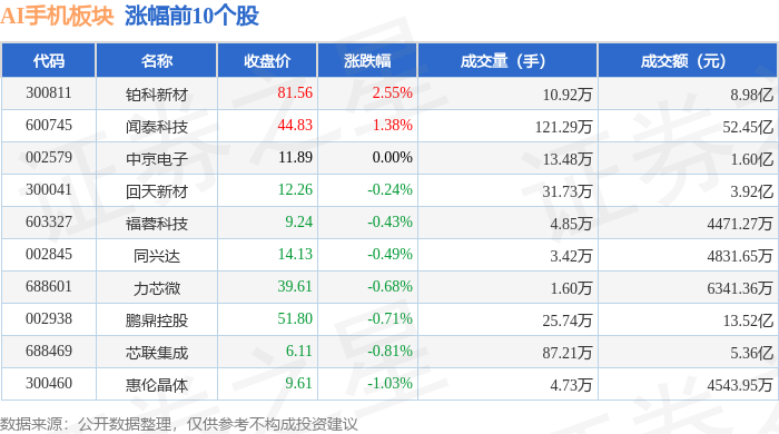 证券之星消息,11月4日AI手机板块较上一交易日下跌2.8%,佰维存储领跌。当日上证指数报收于3960.19,下跌0.41%。深证成指报收于13175.22,下跌1.71%。AI手机板块个股涨跌见下表: