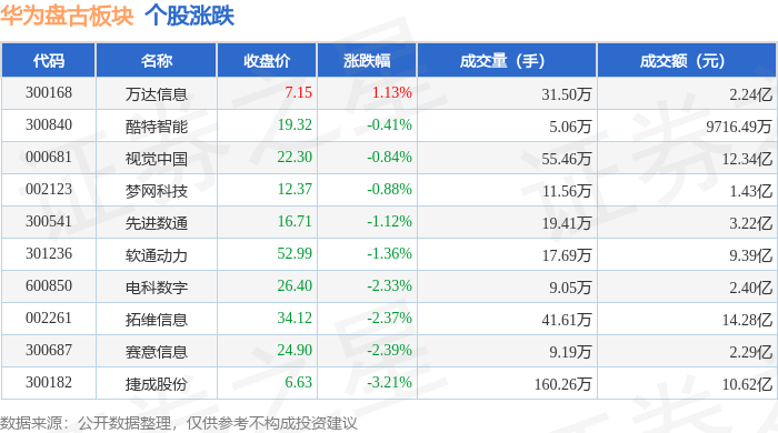 证券之星消息,11月4日华为盘古板块较上一交易日下跌1.68%,捷成股份领跌。当日上证指数报收于3960.19,下跌0.41%。深证成指报收于13175.22,下跌1.71%。华为盘古板块个股涨跌见下表: