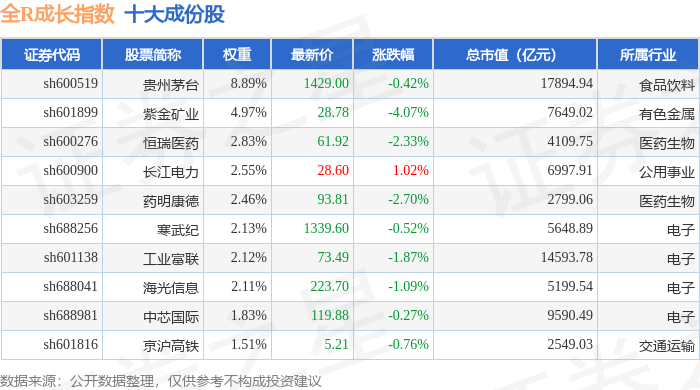 证券之星消息,11月4日,全R成长(000059)指数报收于3317.75点,跌1.36%,成交3776.7亿元,换手率1.63%。当日该指数成份股中,上涨的有73家,中微公司以5.38%的涨幅领涨,下跌的有299家,佰维存储以9.22%的跌幅领跌。