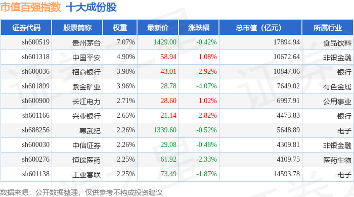 证券之星消息,11月4日,市值百强(000155)指数报收于3297.5点,跌0.23%,成交2233.34亿元,换手率0.47%。当日该指数成份股中,上涨的有36家,中微公司以5.38%的涨幅领涨,下跌的有58家,拓普集团以6.62%的跌幅领跌。