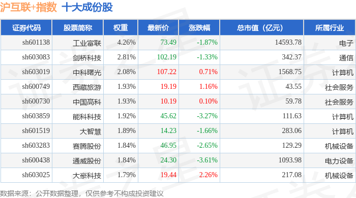 证券之星消息,11月4日,沪互联+(000162)指数报收于3712.49点,跌0.82%,成交512.35亿元,换手率1.07%。当日该指数成份股中,上涨的有23家,中信银行以3.31%的涨幅领涨,下跌的有46家,禾川科技以3.99%的跌幅领跌。