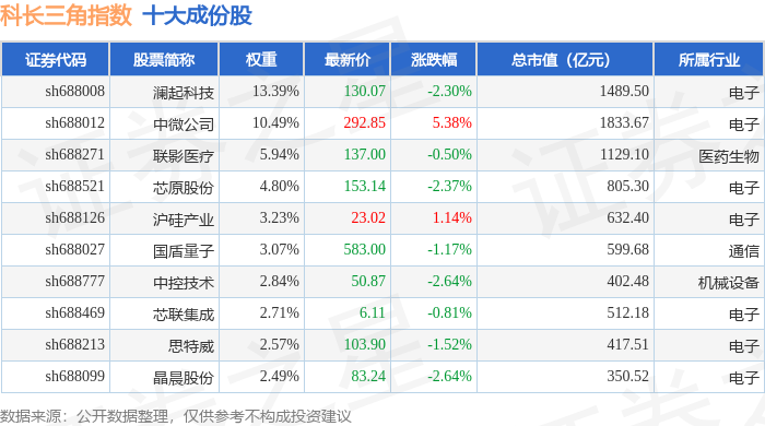 证券之星消息,11月4日,科长三角(000695)指数报收于1032.25点,跌1.03%,成交419.54亿元,换手率2.23%。当日该指数成份股中,上涨的有7家,中微公司以5.38%的涨幅领涨,下跌的有51家,天奈科技以4.25%的跌幅领跌。
