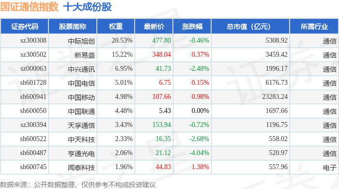 证券之星消息,11月4日,国证通信(399389)指数报收于7162.24点,跌0.97%,成交849.22亿元,换手率1.15%。当日该指数成份股中,上涨的有8家,联特科技以3.17%的涨幅领涨,下跌的有61家,东土科技以6.03%的跌幅领跌。
