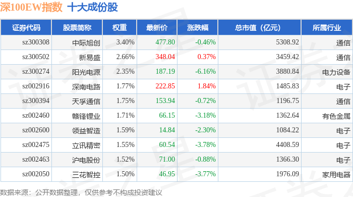 深100EW(399632)指数十大成份股详情如下: