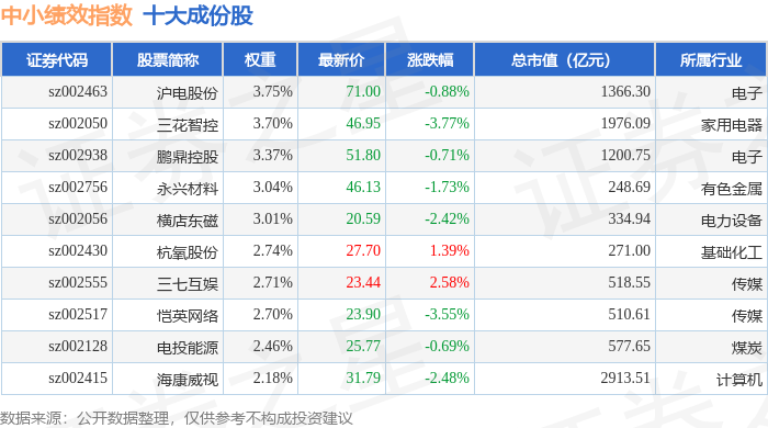 中小绩效(399658)指数十大成份股详情如下: