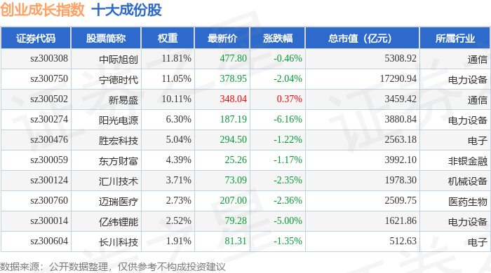 证券之星消息,11月4日,创业成长(399667)指数报收于5249.54点,跌1.76%,成交1359.71亿元,换手率2.95%。当日该指数成份股中,上涨的有7家,蓝色光标以3.69%的涨幅领涨,下跌的有43家,阳光电源以6.16%的跌幅领跌。