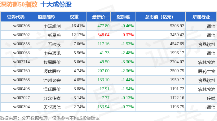 深防御50(399671)指数十大成份股详情如下: