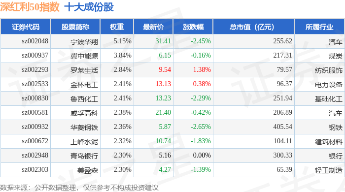 证券之星消息,11月4日,深红利50(399672)指数报收于4179.58点,跌0.29%,成交129.89亿元,换手率1.41%。当日该指数成份股中,上涨的有22家,江阴银行以3.67%的涨幅领涨,下跌的有26家,龙佰集团以4.16%的跌幅领跌。